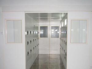 貨淋室貨淋室、浴塵室、貨淋機、貨淋門、貨淋通道、吹塵室、防爆雙吹貨淋室、單人雙吹貨淋室、高智能語音貨淋室、烤漆板貨淋室、全不銹鋼貨淋室、電子互鎖貨淋室、自動感應貨淋室是貨進出潔凈室所必需的通道并同時起到氣閘室密閉潔凈室的作用。為了減少由于貨進出所帶來的大量塵埃粒子,經高效過濾器過濾后的潔凈氣流由可旋轉噴嘴從各個方向噴射至貨物上,有效而迅速清除塵埃粒子,清除后的塵埃粒子再由初、高效過濾器過濾后重新循環到貨淋區域內。